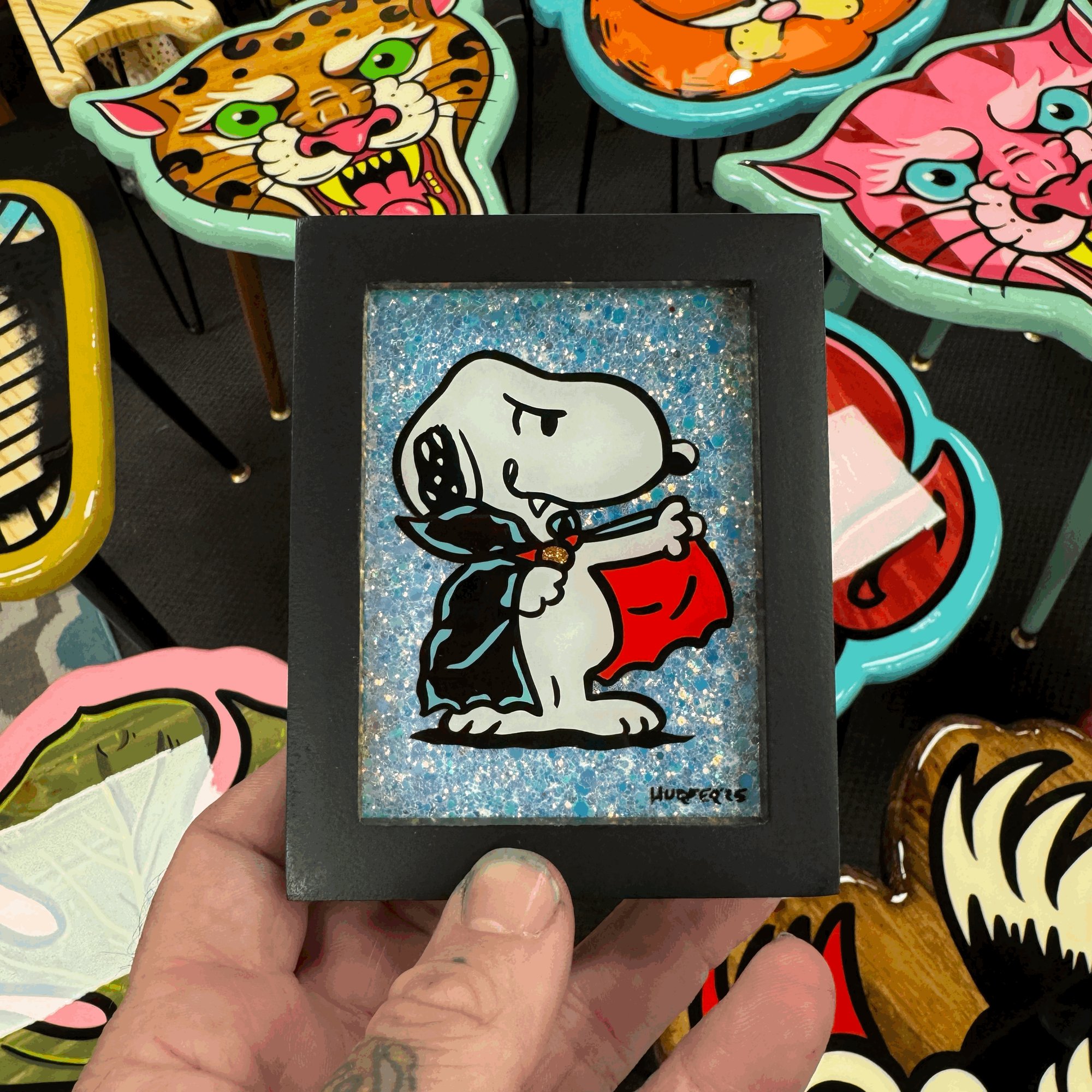 Painted on glass w/ enamel paint & glow in the dark glitter